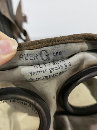 Luftschutz Gasmaske mit Filter in Bereitschaftsbüchse von Auer. Guter Zustand