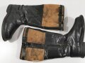 Luftwaffe, Paar Stiefel für Angehörige des fliegenden Personal. Originale Sohle, schwarze, gängige RiRi Reissverschlüsse, einer davon mit Kleberesten im unteren Bereich. Ungereinigtes Paar, zum Teil defekt