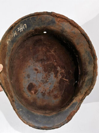 Luftwaffe, Stahlhelmglocke Modell 1940 mit Tarnlackierung, ungereinigter Wasserfund