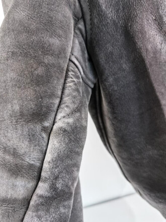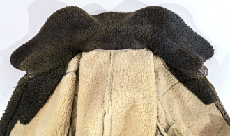 Luftwaffe, gefütterte Winterjacke für fliegendes Personal aus grauem Wildleder. Späte Ausführung mit weissen RiRi Verschlüssen, der vordere vor langer Zeit durch einen US amerikanischen ersetzt. Guter Gesamtzustand