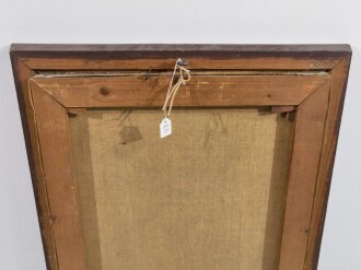 Luftwaffe, gerahmtes Ölbild darstellend einen Angehörigen der Luftwaffe Fallschirmjäger oder fliegendes Personal. Das Bild signiert 1943. Maße mit Rahmen 47 x 57cm, der Rahmen leicht defekt