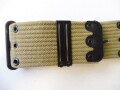 New, USA made reproduction. These are NOT the chintzy abominations offered elsewhere made with nylon webbing with tin & plastic hardware that breaks the first time you look at it... The pistol belts are made in ATF's own shop, from 100% cotton shuttle loomed webbing using a mix of original (N.O.S.) and exact reproduction hardware. Eyelets and the snaps are Scovil & Stimpson brand products- same as the War Department used in WWII.Made in USA manufactured by ATFSizes: We realize that many people need something a little longer than originals, so we have made 3 sizes- regular, large and XL. Regular is basically the same as an original belt, and they go up from there.