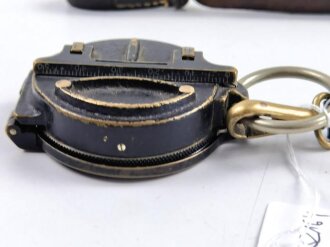 Marschkompass Wehrmacht, Hersteller "MK" datiert 1933. Gebraucht, mit dem seltenen Fangriemen