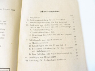 Merkblatt 47b/36 " Bedienungs- und Schießanleitung für die 7,5cm Pak 40 ( Sf.) vom 7.4.44. Kleinformat, 32 Seiten