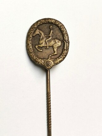 Miniatur, Deutsches Reiterabzeichen in Bronze, Größe 18 mm, Rückseitig mit Hersteller Lauer Nürnberg