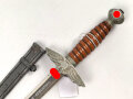 Miniatur Dolch Luftwaffe, Hersteller SMF Solingen, Werbegeschenk " Schoeller Bleckmann Phoenix Edelstahl" Scheide mit nur einem Ring, Klinge lässt sich nicht ganz einschieben