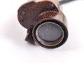 Monokular aus einem Dienstglas 6 x 30 der Wehrmacht in Preßstoff Ausführung. Der gebrochene Mittelsteg recht grob beschliffen, eventuell feldmäßige Behelfsausführung. Gute Durchsicht