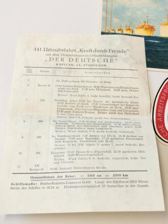 NSG " Kraft durch Freude" 141. Reise mit Dampfer " Der Deutsche" 1939, kleines Konvolut eines Reisenden