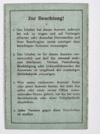 Nachkrieg, Personalausweis für die Britische Zone, Freudenberg (Kreis Siegen), gebraucht