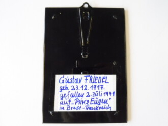 Nachlass eines auf "Prinz Eugen" gefallenen, bestehend aus gerahmtem Wappen, Heldentodurkunde, 3 Fotos sowie einem Kunstdruck.