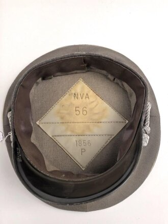 Nationale Volksarmee der DDR, Schirmmütze für Offiziere der Landstreitkräfte. Datiert 1986, Kopfgrösse 56, mit Bundesrepublikanischer Kokarde, so 1990 getragen