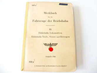 939b "Merkbuch für die Fahrzeuge der Reichsbahn" Elektrische Lokomotiven, Trieb-, Steuer- und Beiwagen, Ausgabe 1941 mit 350 Seiten