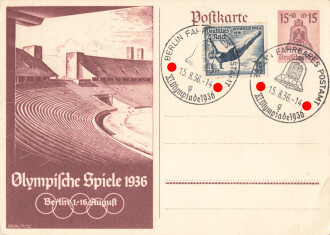 Olympia Berlin 1936, Ganzsache mit Stempel: "Berlin Fahrbahres Postamt 15.8.1936", 10,5 x 15 cm, guter Zustand