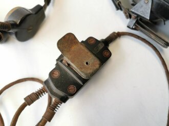 Panzerkopfhörer mit Kehlkopfmikrofon und Umschalter der Wehrmacht. Ungereinigtes Set, die Gummimuscheln weich