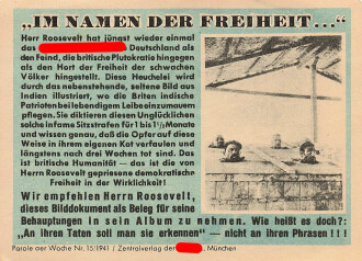 Parole der Woche Nr. 15/1941, "Im Namen der Freiheit...", Zentralverlag der NSDAP, 7,5 x 10 cm