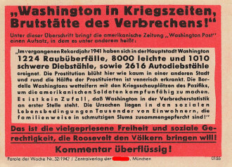 Parole der Woche Nr. 32/1942, "Washington in Kriegszeiten, Brutstätte des Verbrechens!", Zentralverlag der NSDAP, 7,5 x 10 cm