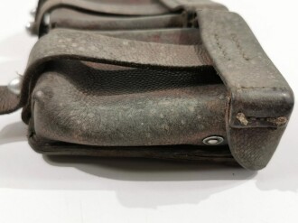 Patronentasche zum K98 Wehrmacht ( für 6 Ladestreifen). Dunkelbraunes Leder, stark getragenes Stück, ungereinigt