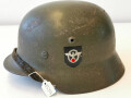 Polizei III.Reich, Stahlhelm Modell 1935 mit beiden Emblemen. Zusammengehöriges Stück , die Glocke original lackiert mit Domstempel. Das Wappen zu 100%, der Adlerschild zu 99% erhalten.