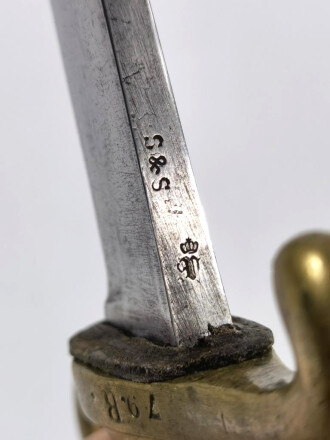 Preussen, Faschinenmesser Modell 1864, Kammerstück mitTruppenstempel, nummerngleich,Hersteller S&S,Abnahmestempel auf Mundblech und Klinge