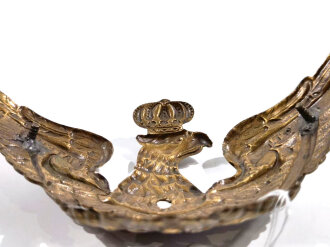 Preussen, Helmemblem Grenadier Mannschaft, messingfarben, ca 17,5 cm breit, 11,5 cm hoch,Halteschraubenabstand 10,2 cm,Löcher für Reservekreuz,