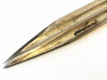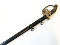 Preußen, Infanterie Offiziers Degen M 1889 mit minimal verbogenem Klappgefäß, die Scheide alt überlackiert, die Klinge gekürzt