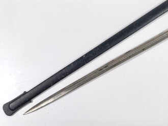 Preussen, Infanterie Offiziersdegen IOD Modell 1889 mit Klappkorb, vernickelte Klinge, plastische Verzierungen an Knauf und Bügel, Hersteller P.O&C Solingen, insgesamt wackelig, war sicherlich mal auseinander um gereinigt zu werden. Scheide überlackiert