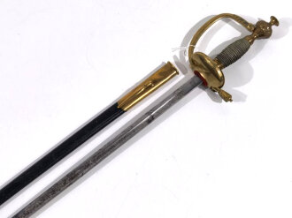 Preussen Kaiserreich,, Infanterie Offiziers Degen IOD alter Art mit Klappkorb, Klinge mit floraler Ätzung leicht fleckig , Solinger Hersteller WKC