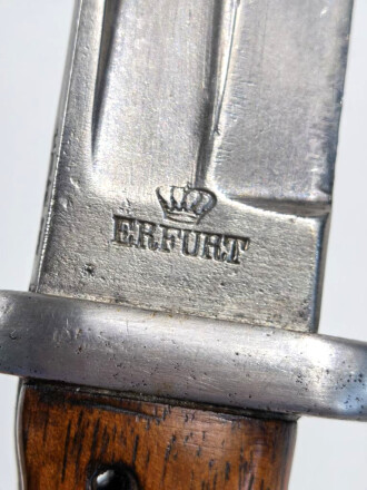 Hersteller Alexander Coppel Solingen , Klingenmarkierung Erfurt Krone ,verschiedene Truppenstempel auf Parierstück und Scheide. Dieser Artikel fällt in den Anwendungsbereich des WaffG und wird nur an Personen geliefert, die das 18. Lebensjahr vollendet haben.