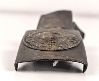 Preussen, Koppelschloss für Mannschaften an ausgetrockneter Lederzunge. Ungereinigtes Stück , die Knone leicht eingedrückt