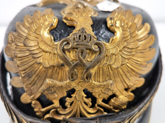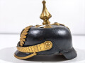 Preußen, Pickelhaube für einen Offizier der Polizei . Die Glocke leicht eingesunken das Unterleder der Schuppenkette leicht defekt, zusammengehöriges Stück