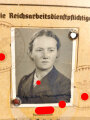 RAD Reichsarbeitsdienst, Arbeitsdienst für die weibliche Jugend, Arbeitsdienstpaß (Arbeitsdienstzeugnis) , ausgestellt 1941 auf eine Frau aus Oberhausen, dazu der vorläufige Entscheid