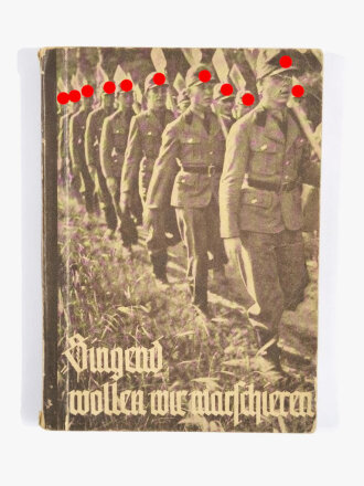 RAD "Singend wollen wir marschieren... Liederbuch des Reichsarbeitsdienstes", 4. Auflage, um 1940, Der Nationale Aufbau Verlag, hrsg. v. Reichsarbeitsführer Thilo Scheller, 160 Seiten, 10,5 x 15 cm, gebraucht