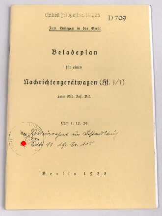 REPRODUKTION, D 709 Beladeplan für einen Nachrichtengerätwagen (hf. 1/1), datiert 1938, DIN A5, 47 Seiten