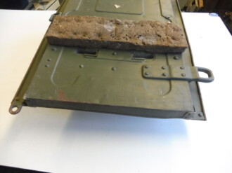 Reichswehr und frühe Wehrmacht, Kraxe für Gebirgstruppen, kann auch als Seitenteil amTragsattel verlastet werden. Originallack, selbst die Filzposter sind gut erhalten. Zum Transport von Waffen und Gerät
