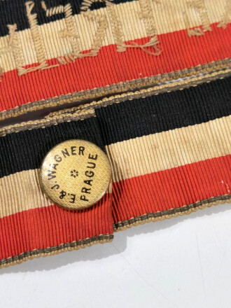 Studentenverbindung/Burschenschaft, Schärpe in "schwarz-weiß-rot" und gesticktem Schriftzug "Ehre Freiheit Vaterland", mit Knopf, Hersteller "E.&J. Wagner Prague", guter Zustand