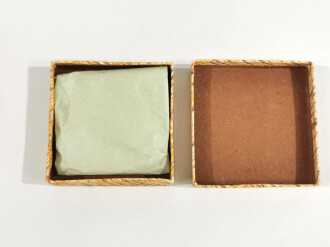 Schachtel für das Allgemeine Sturmabzeichen mit Einwickelpapier, sehr guter Zustand. Zu diesen Schachteln gibt es die unterschiedlichsten Meinungen von " garantiert Original" bis "50iger Jahre DDR" Ich weiß das nicht, daher überschaubarer Preis
