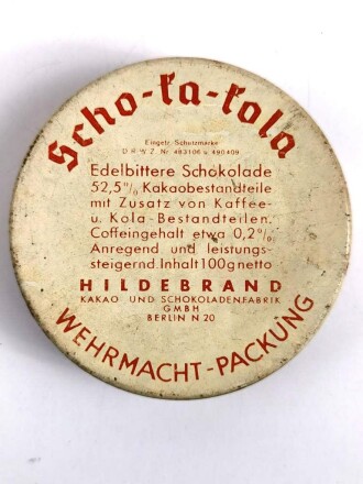Scho-ka-kola Dose Wehrmacht Packung datiert 1941, leer, lässt sich nicht öffnen