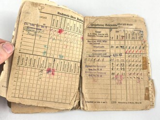 Später Bäckerei Kompanie 240, eingetragene Medaille Winterschlacht im Osten, Kriegsverdienstkreuz 2. Klasse mit Schwertern, EKII, verwundetenabzeichen silber. Etwa 10 Lazarettaufenthalte, zuletzt durch französische Ärztekomission am 6.6.45 entlassen. Stark getragen, sehr viele Einträge, Seite 34 und 24 sowie rückseitiger Einband fehlen