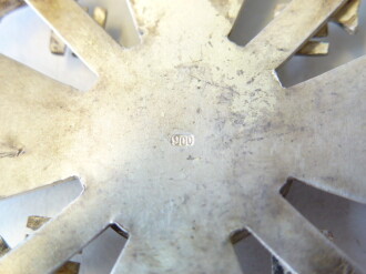 Spanienkreuz in Silber mit Schwertern im Etui. "900" er Silberstück, angelaufen.