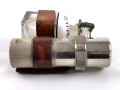 "Spiritus" Behälter und Spritze im Behälter. Beides in Ledermanschette, gehört so in die Sanitätstasche für Sanitätsoffiziere