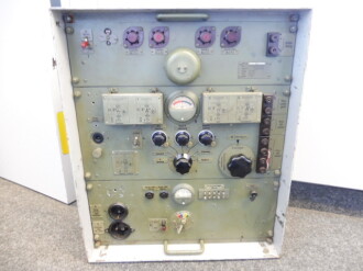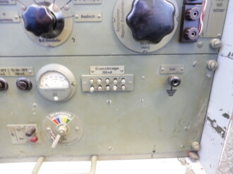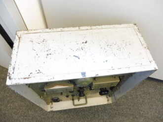 Springschreibanschlussgerät Wehrmacht datiert 1940 ( Fernschreibanschlussgerät) Das Gehäuse vermutlich nachlackiert, die Frontplatte originallack. Funktion nicht geprüft, Gewicht 39,3 kg
