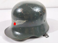 Stahlhelm Luftschutz, Grüner Originallack, zusammengehöriges Stück in gutem Gesamtzustand