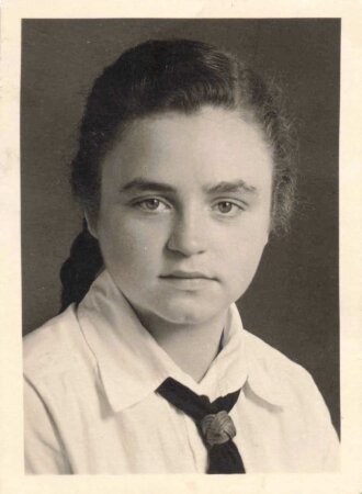 Studioaufnahme einer Angehörigen des BDM, Maße: 4 x 5,5 cm, datiert 1942