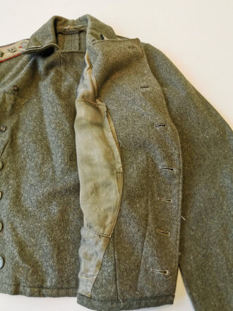 Sturmgeschützjacke für einen Oberleutnant der Panzerjäger mit original vernähten Effekten, der Brustadler abgetrennt. Kammerstück in sehr gutem Zustand