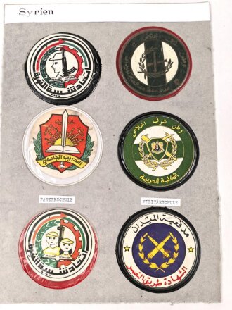 Syrien, Sammlung Ärmelabzeichen des Militärs, auf Karton geklebt