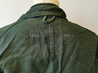 Technische Nothilfe, grüne Drillichfeldbluse, ungetragenes Stück, Schulterbreite 44 cm, Armlänge 56 cm