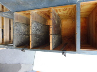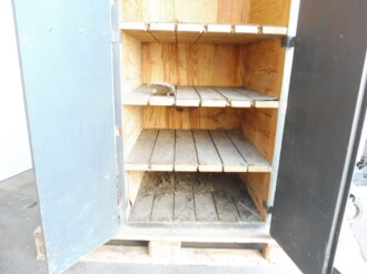 Teile von Einbauschränken für Nachrichtenmaterial in einem Fahrzeug der Wehrmacht. Nur grob gereinigte Stücke im Originallack. Nur an Selbstabholer oder Speditionsversand. Die angegebene Versandkosten stimmen nicht.