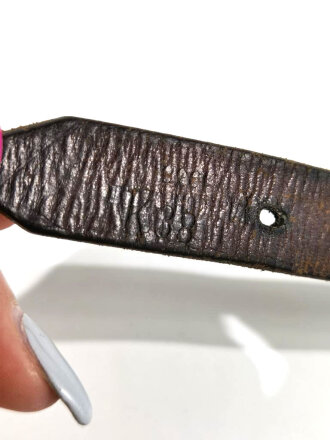 Tornisterriemen Wehrmacht, frühes, ungeschwärztes Stück mit Aluminiumbeschlägen