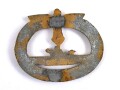 U- Boot Kriegsabzeichen, Zink, Hersteller " L/58 für Rudolf Souval, Wien " Nadelsystem fehlt. Fertigung aus der NACHKRIEGSZEIT