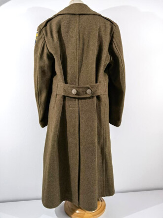 U.S. 1943 dated wool overcoat. Size 36R. Good condition, Most likely original sewn "Engineer amphibian unit" patch and four overseas service bars.